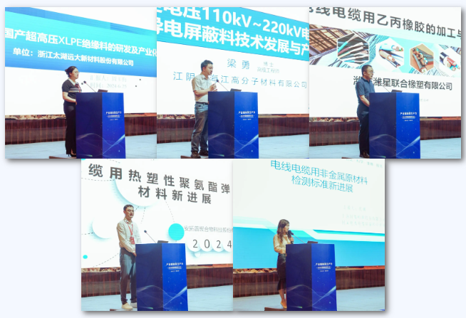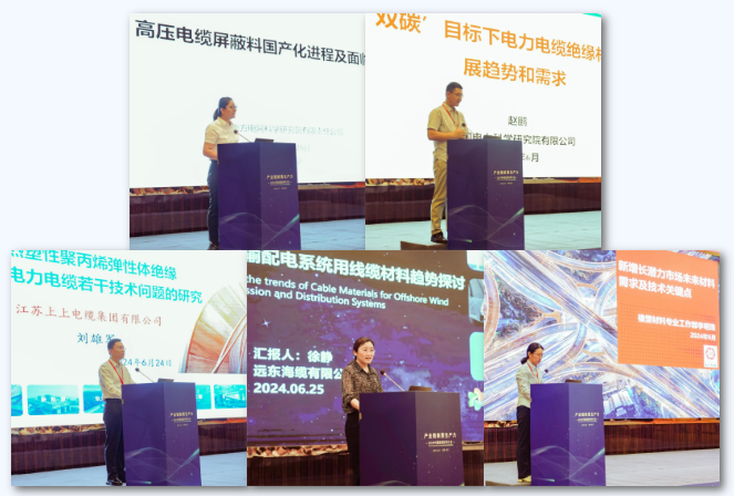 上海电缆研究所有限公司副总经理、总会计师许伟斌代表主办方致辞。他指出,我国正处于新一轮科技革命、产业变革和产业链、供应链水平提升的关键期,发展新质生产力成为推动高质量发展的内在要求和关键着力点。聚焦线缆材料领域的新质生产力发展,其核心要素——科技创新已成为助力线缆产业提质增效、推动线缆产业链现代化的关键途径之一。 在保持相当高的经济规模的同时,与以往相比,行业增长速度已趋于平缓,进入个位数增长阶段。他指出,微利时代线缆制造与线缆材料行业存在“内卷”现象,要恢复较好增长态势还承受着较大的压力,需要全行业携手努力,想方设法攻坚克难。为此,他提出三点建议: 一是以新供给与新需求的高水平动态平衡为落脚点,构建高效能的线缆材料新质生产力。线缆材料行业应继续密切关注市场新动态和用户需求新变化,实现线缆材料国产化替代和高水平科技自强自立,同时灵活调整生产和经营策略、强化内部管理、优化生产调度以应对市场变化。 二是以创新为第一动力,构建高科技的线缆材料新质生产力。行业要围绕重点新材料创新突破,通过技术创新、流程优化、产品升级等方式,研发和生产满足需求的新产品。同时,以科技创新为引领,整合资源、协同推进,运用数字化等手段建立新型供应链体系,推动产业创新链的深度融合。 三是以双碳发展目标为契机,构建绿色低碳的线缆材料新质生产力。线缆材料企业要加快实施绿色战略,顺应绿色低碳的趋势,通过优化设计、工艺研究、应用研究等方式,实现低碳设计、低碳选料、低碳生产的目标,助力国家实现双碳目标,实现线缆产业节能降碳发展。 新场景、新进展、新突破 共话材料创新关键点 在“需求引领”专题报告中,围绕高压电缆屏蔽料、电力电缆绝缘材料、环保型热塑性聚丙烯中压电力电缆、海上风电输配电系统用线缆材料、新增长潜力市场未来材料需求及技术关键点等话题,专家们洞悉需求,研判未来增长趋势。